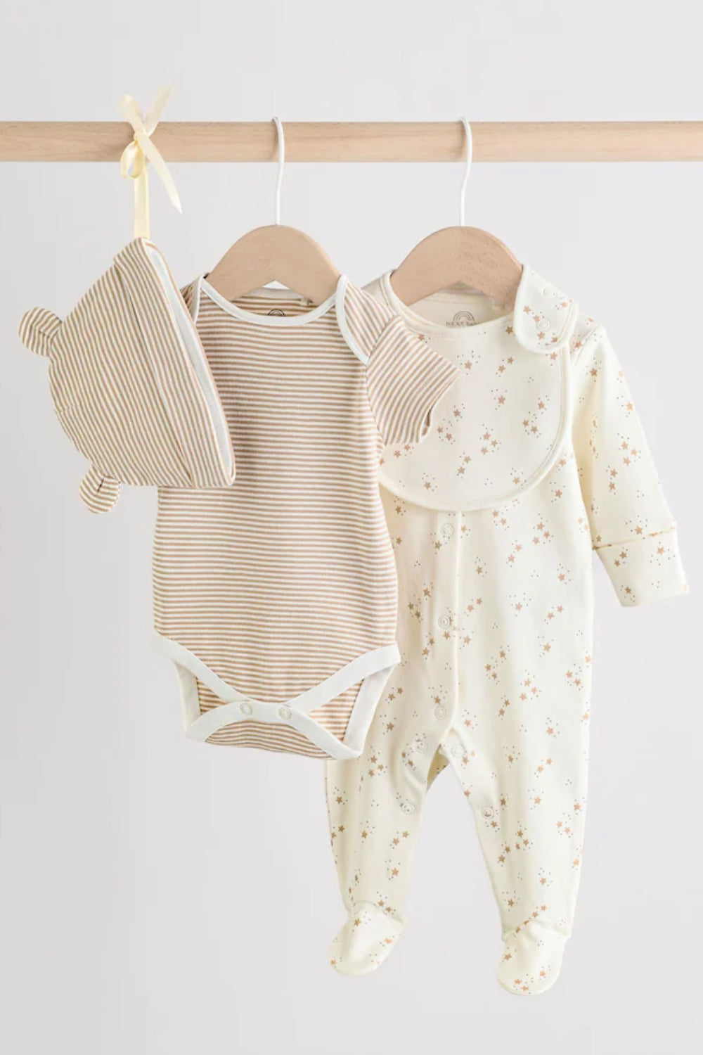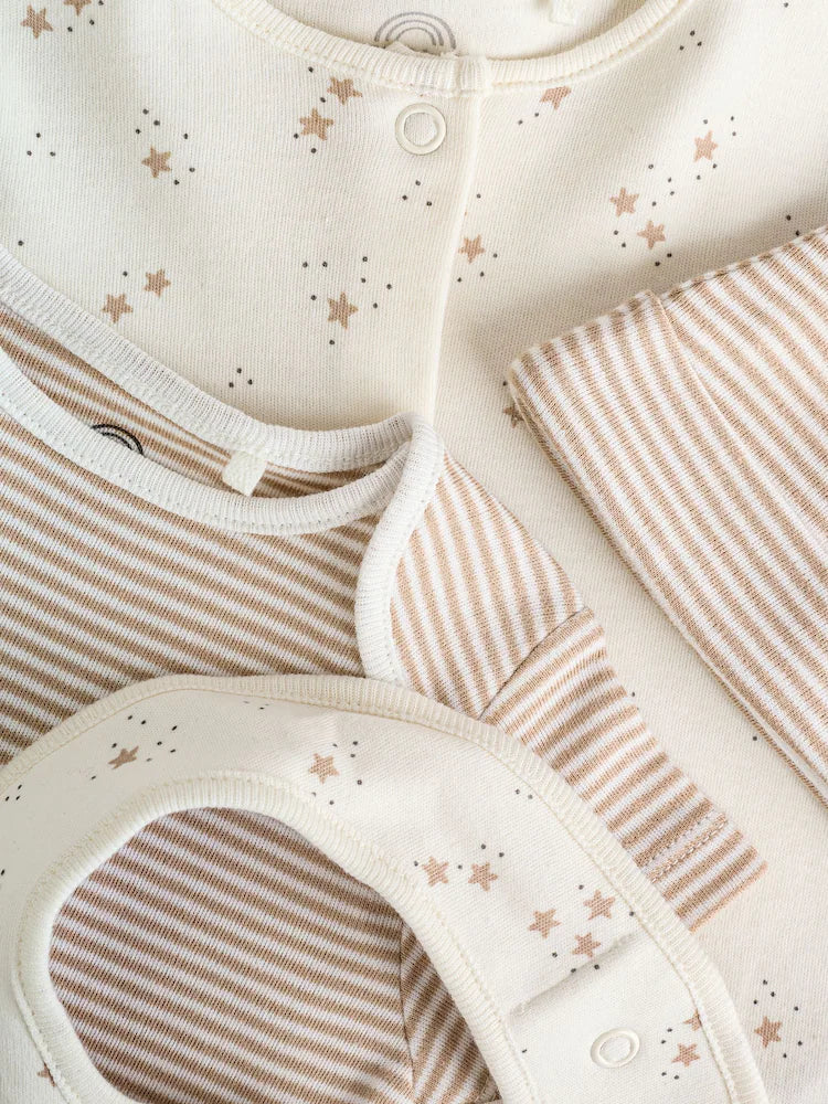 4 Piece Baby Set - Sleepsuit, Bodysuit, Beanie and Bib - Natural Beige