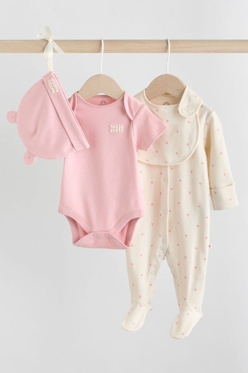 4 Piece Baby Set - Sleepsuit, Bodysuit, Beanie and Bib - Pink