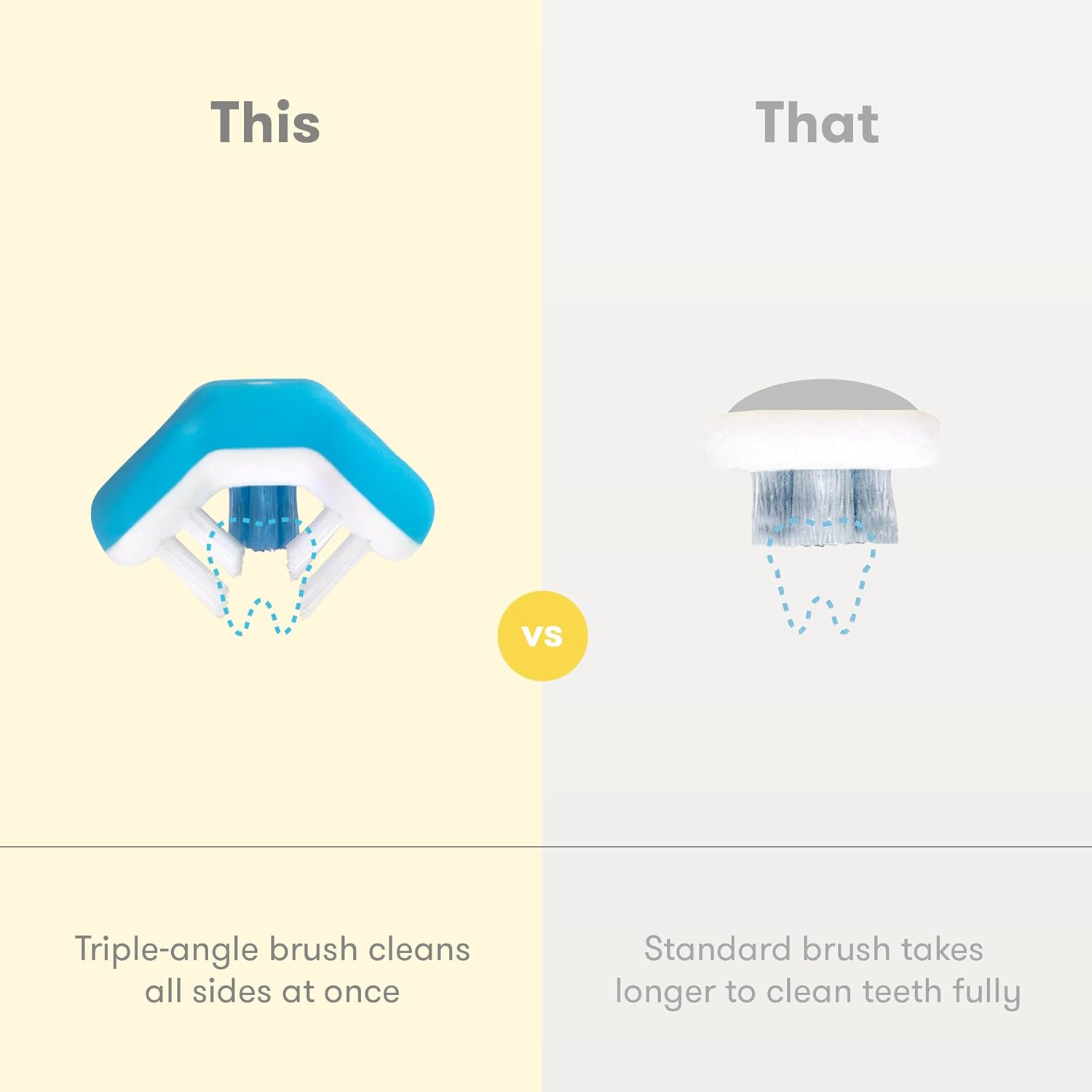 - TRIPLE-ANGLE BRUSH: Dentist-recommended, unique brush head cleans all sides of the tooth all at once