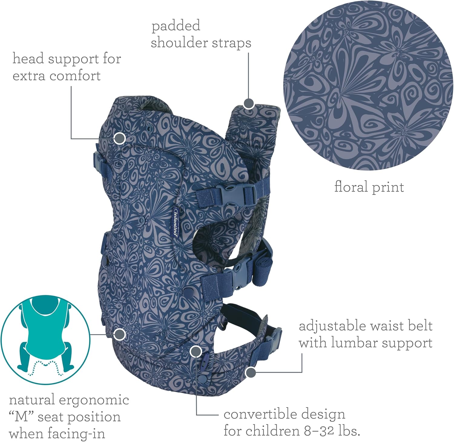 Infantino - Flip 4-in-1 Convertible Carrier - Navy Floral