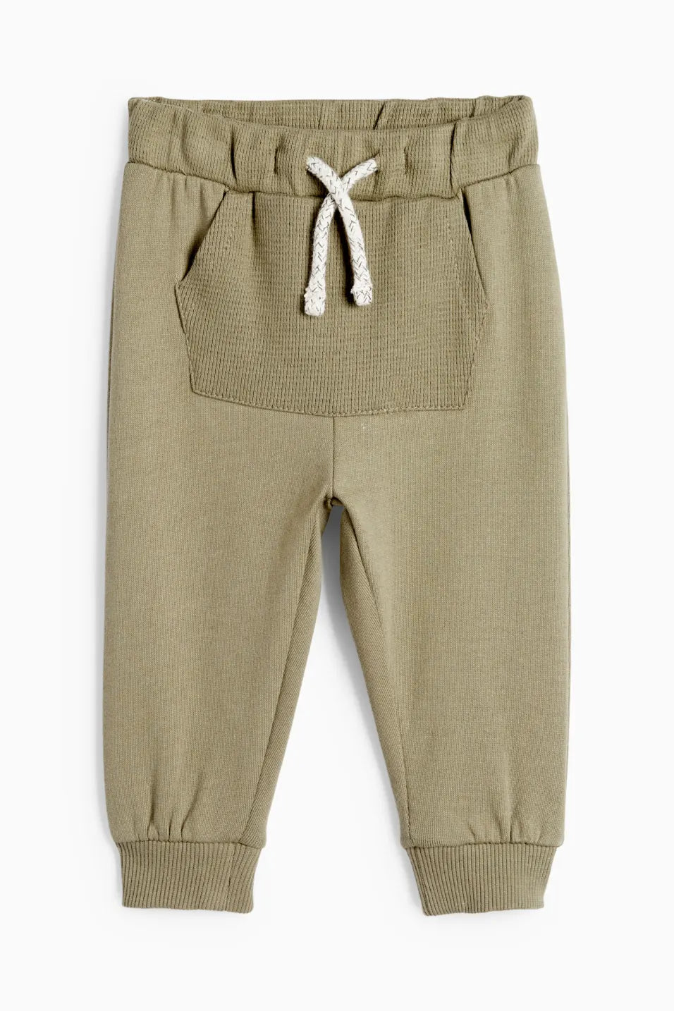 Baby outfit in soft quality. Sweatshirt with Mickey mouse motif and lettering, press stud at the side of the neckline and ribbed cuffs. Sweatpants with elastic waistband, snued drawstring, kangaroo pocket with waffle structure and ribbed cuffs at the hems.