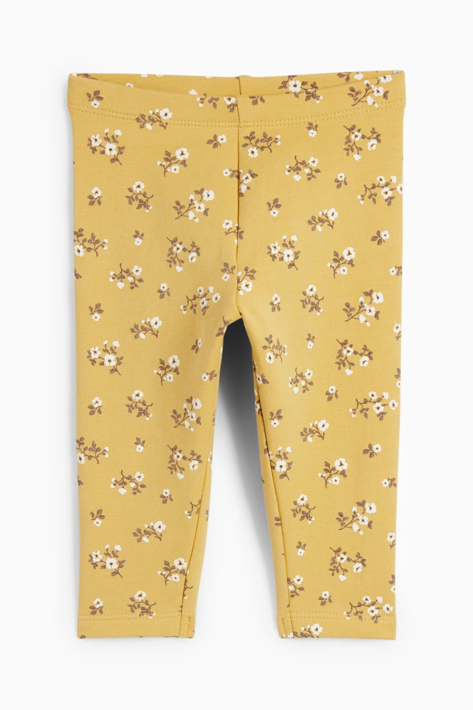 Baby outfit in soft quality. Sweatshirt with Minnie mouse patch, sweetheart structure, stretchy cuffs and snap button on the side of the neckline. Leggings with floral pattern and elastic waistband. Patterned hair band with decorative bow and elastic insert on the back.
