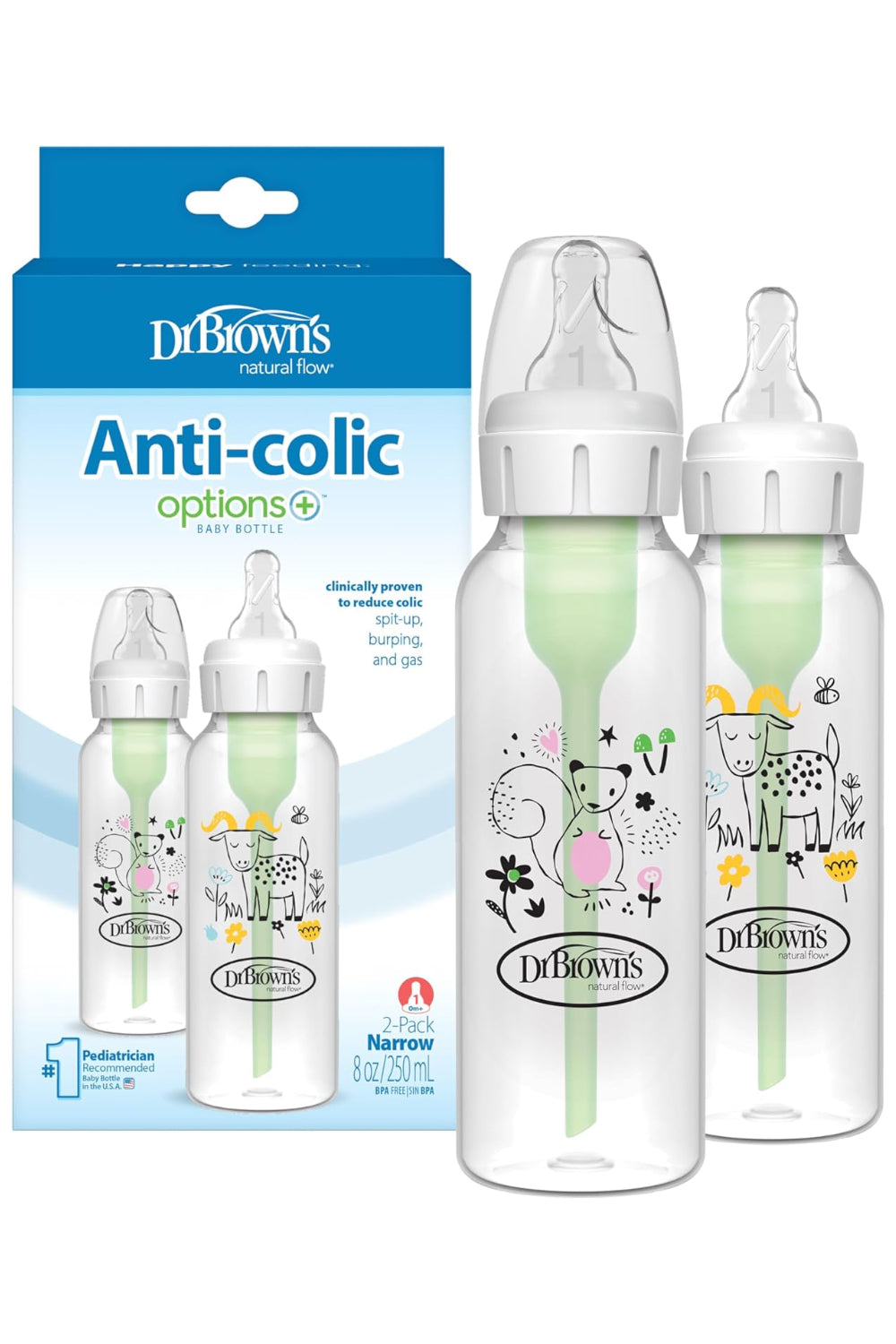 Narrow Neck Options+ Bottle 250ml, Green, 2-pack / Squirrel & Goat