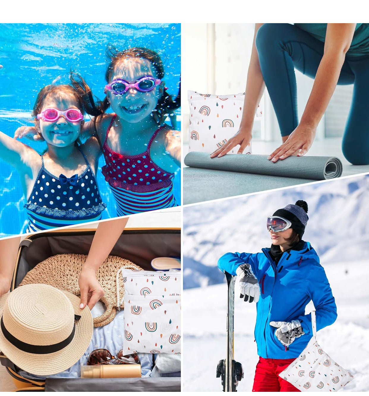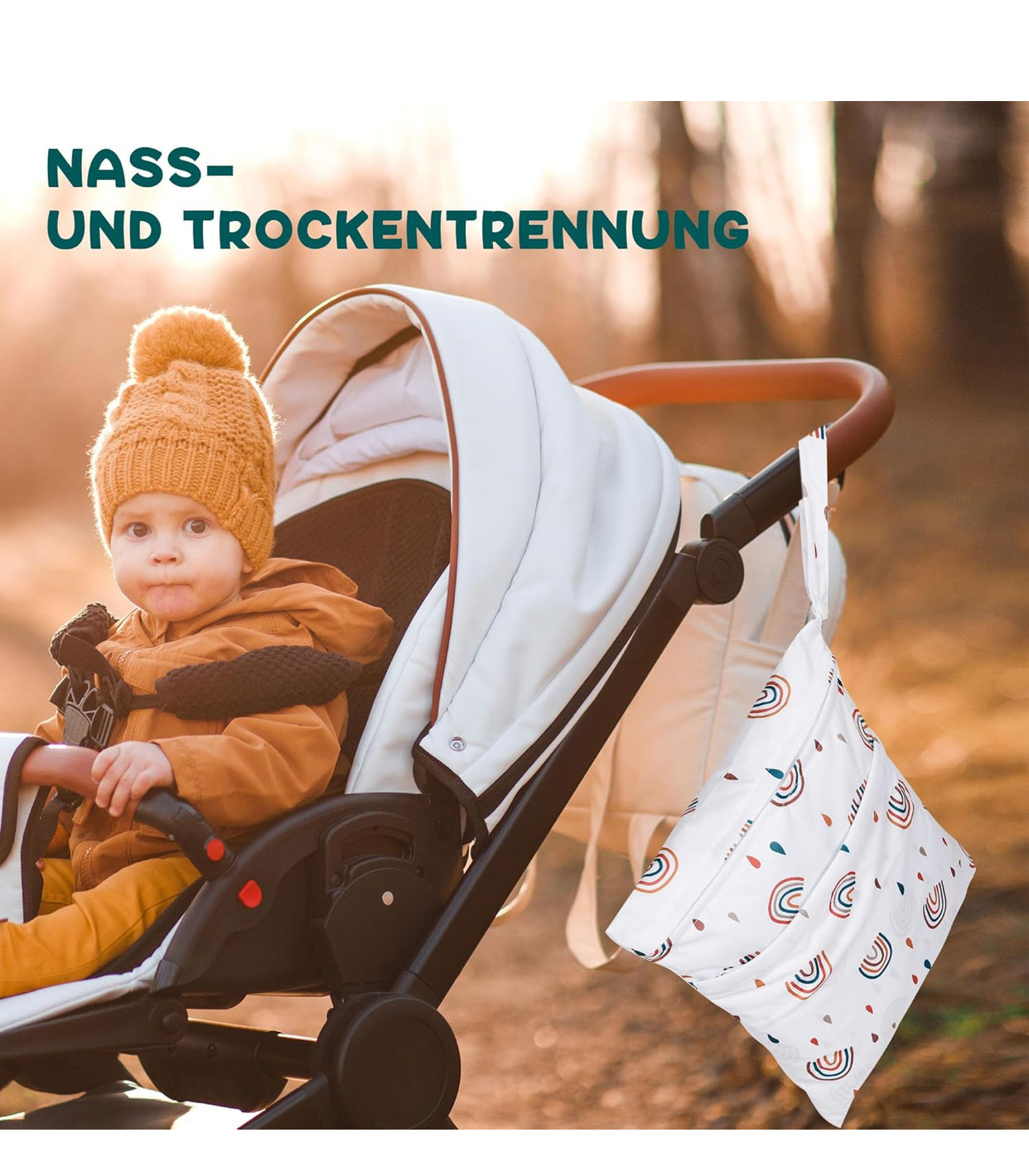 - [Large Capacity] - The spacious double zip dry wet bag allows you to separate dry and damp items such as nappies, swimsuits, beach towels and sportswear in one bag. The smaller version can hold 5-7 nappies. Enough room for nappies and more.